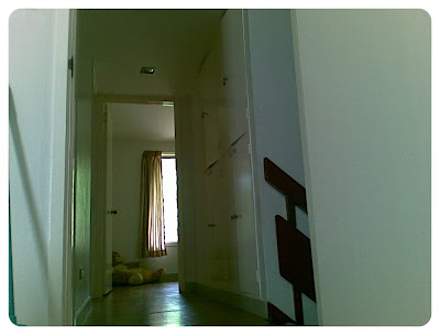 the hallway between the master bedroom and the Kid's bedroom upstairs. See the Teddy bear at the corner? One of our best investments for the Kid. She loves running away from Daddy and Mama, across the hallway and straight into the Teddy whenever we want to do things that she does not want, like putting her in her clothes or getting back Daddy's phone. Taken from about 30cm above the floor, this must be her view of the hallway. a lovely view indeed.