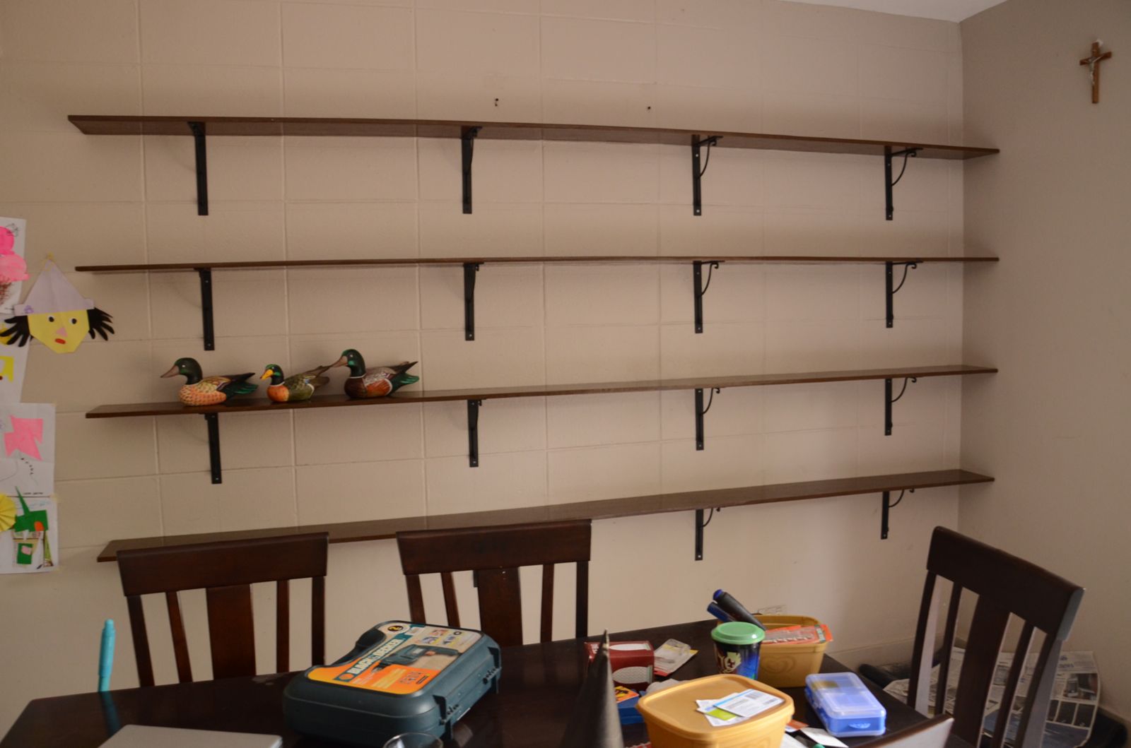 The shelves extend almost the whole length of the dining room. I am hoping that they would finally remove the (ever-present) clutter from the dining table: the various arts & crafts material, half read books, and whatever knicks knacks that found its way to the table.